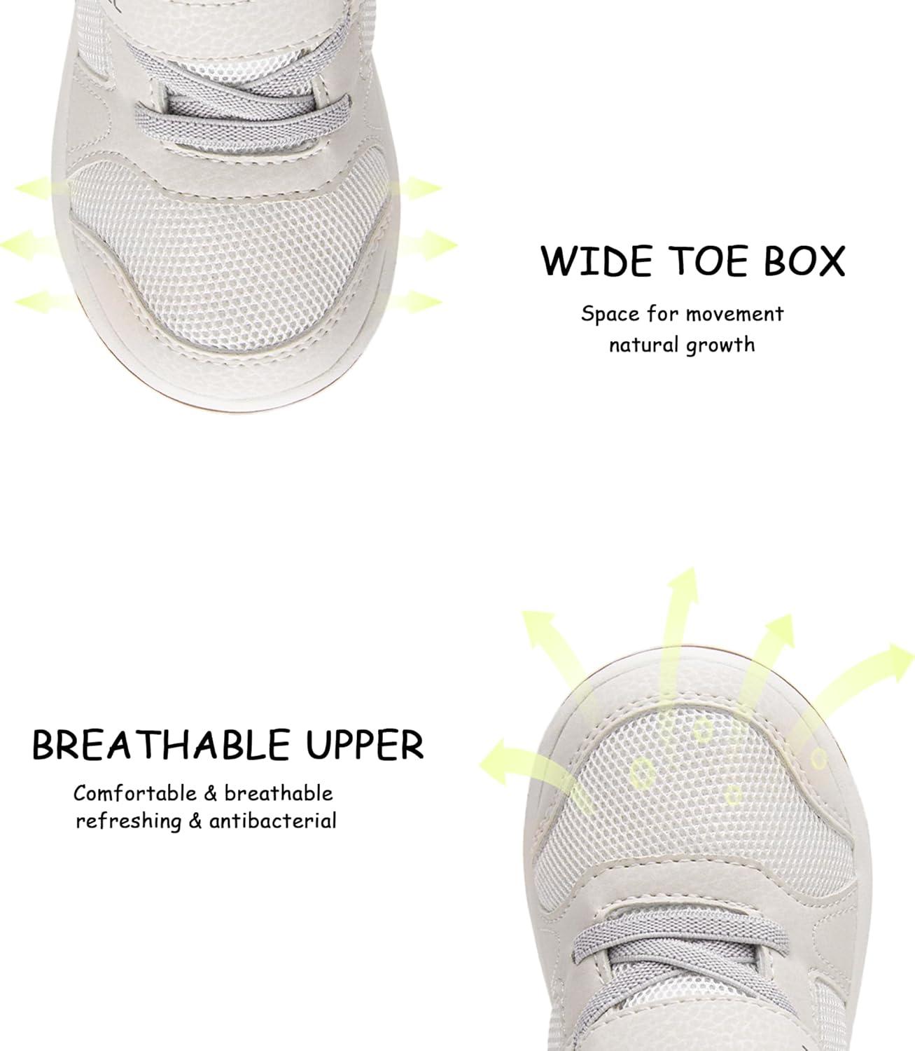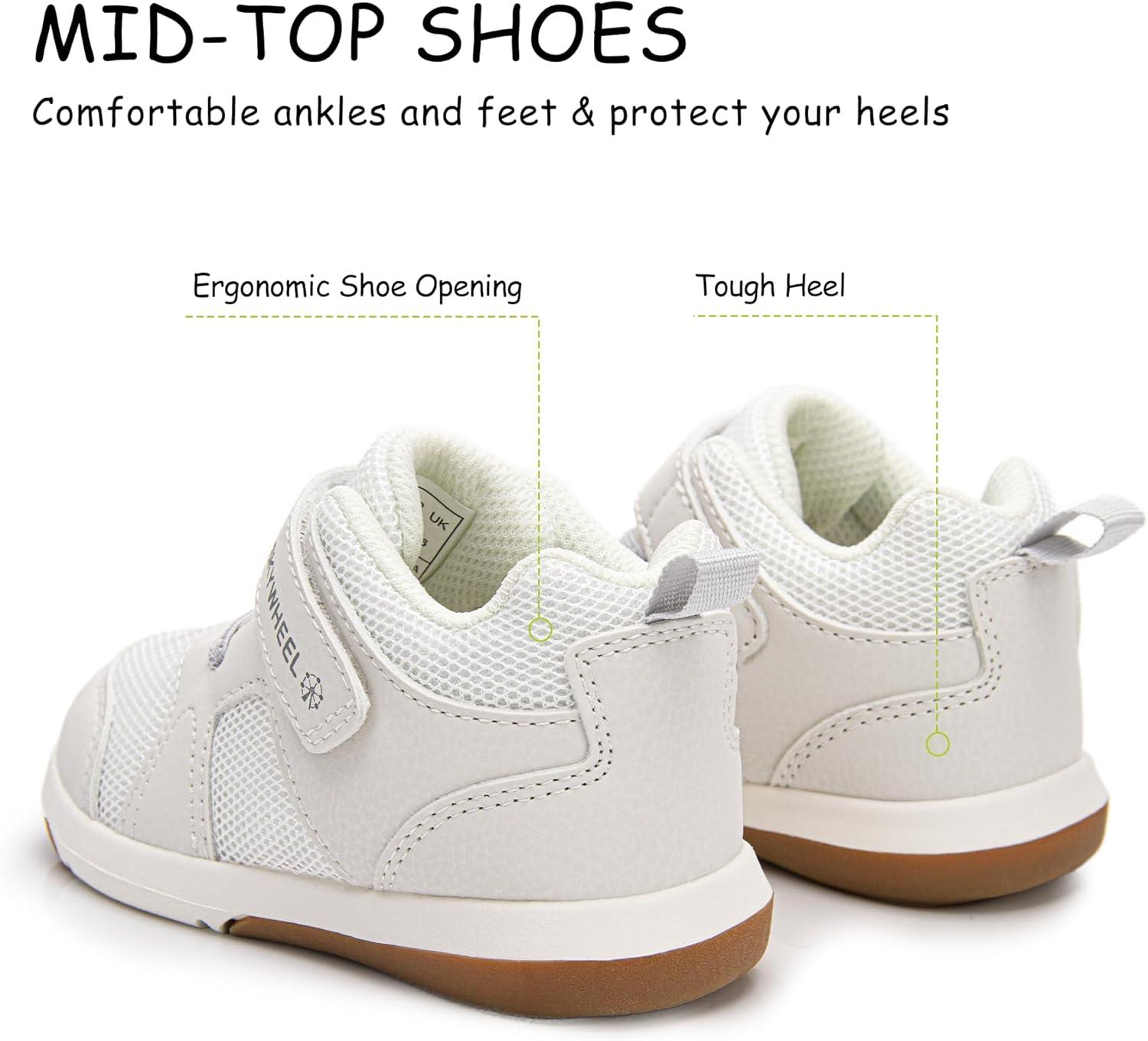 SKYWHEEL Boys High Top Sneakers Toddler Boots with Hook and Loop, Ankle Support Wide Toe Shoes for Kids(Beige White)