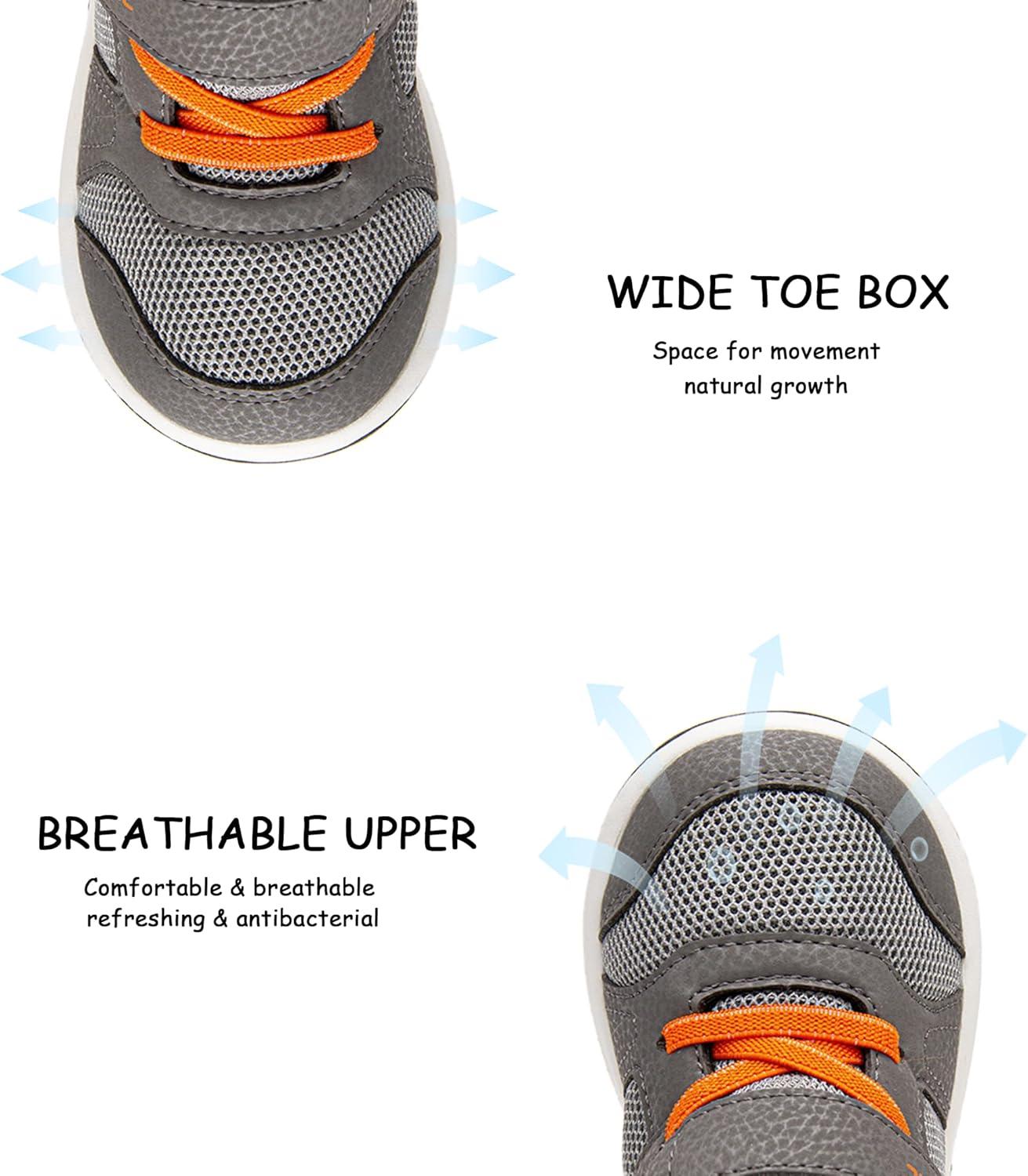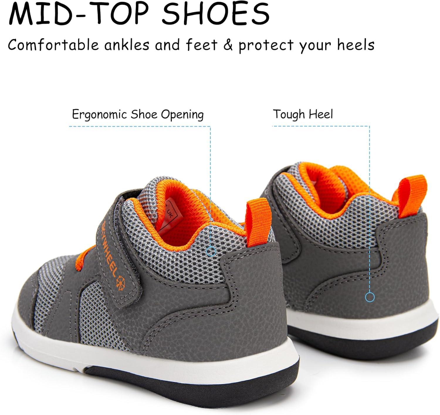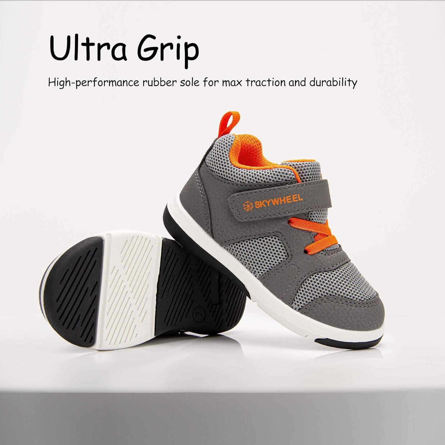 SKYWHEEL Boys High Top Sneakers Toddler Boots with Hook and Loop, Ankle Support Wide Toe Shoes for Kids(Grey)