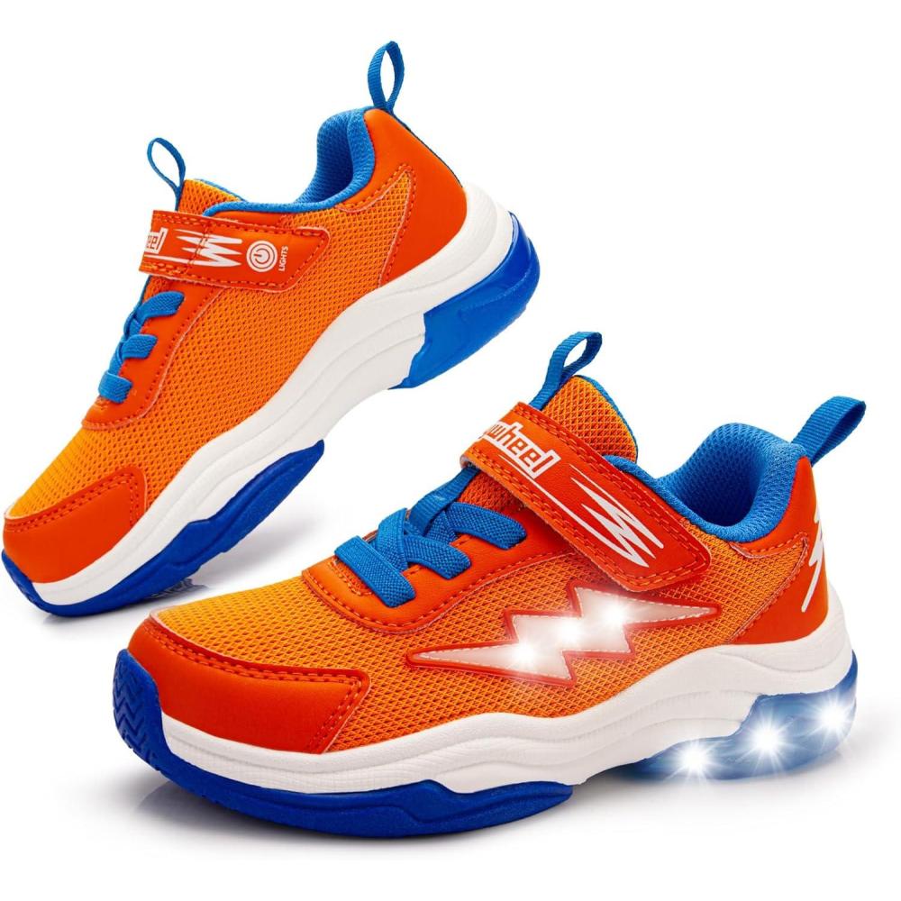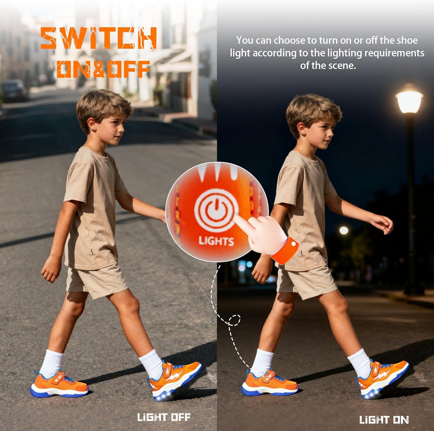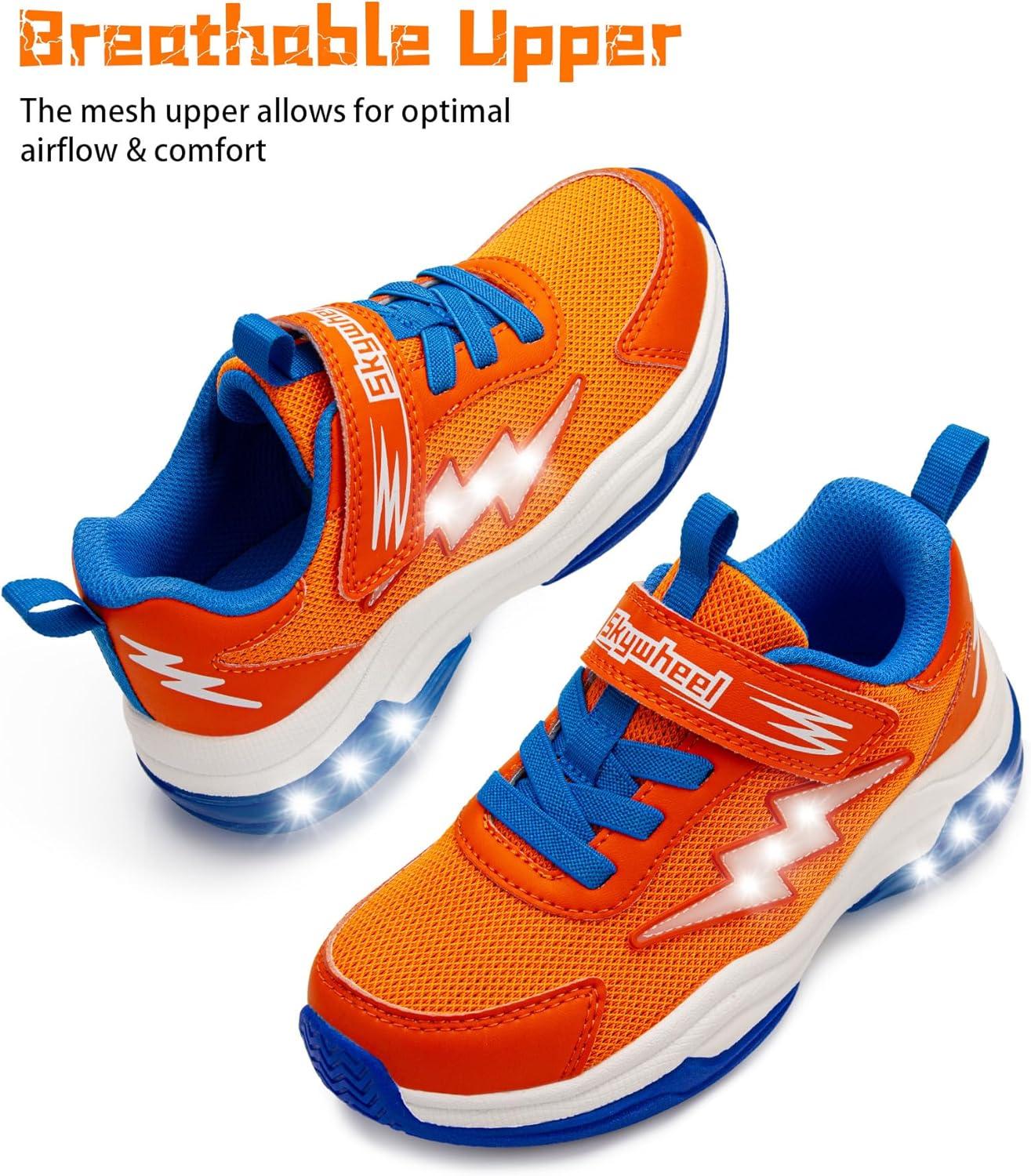 SKYWHEEL Kids Sneakers for Boys Light Up Shoes with Switch Tennis Running Athletic Shoes Toddler Size 10 to Big Kids Size 5(Orange Kids Ligth Up Shoes)