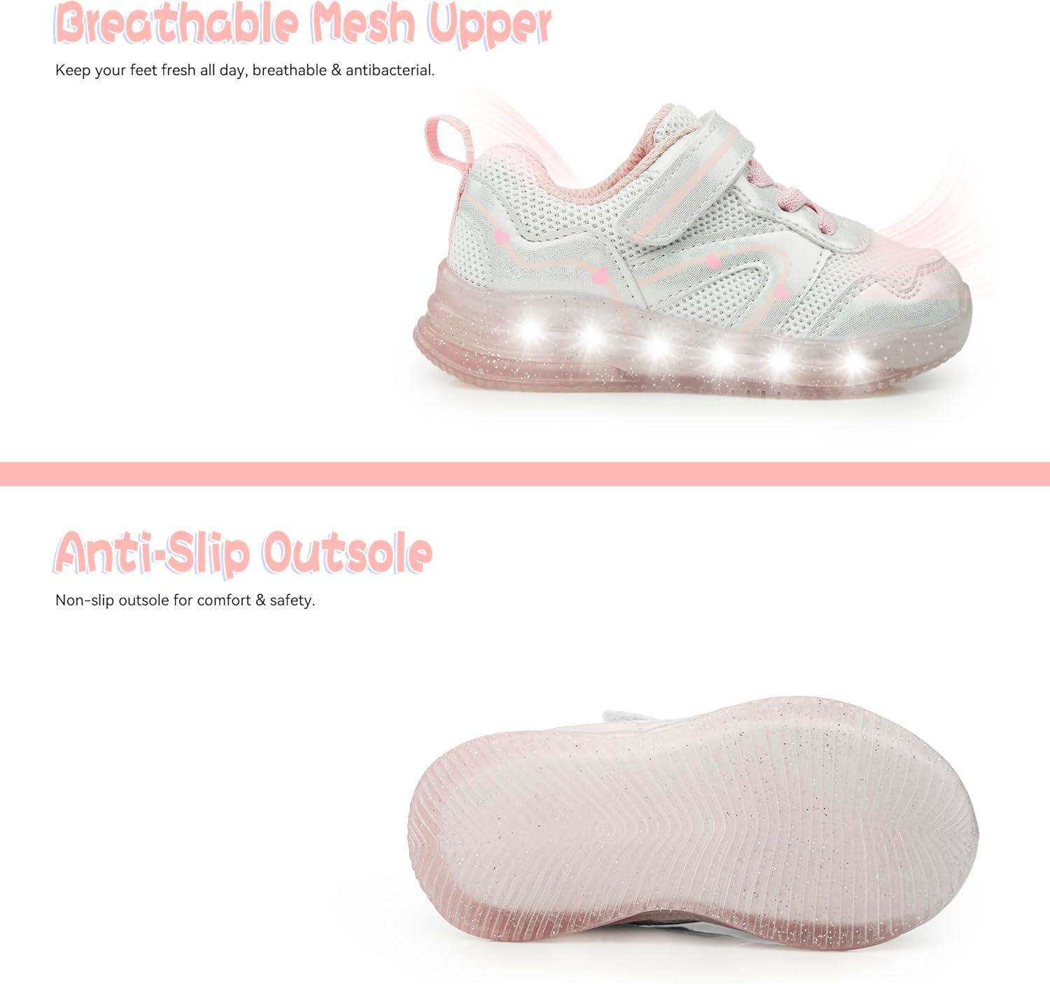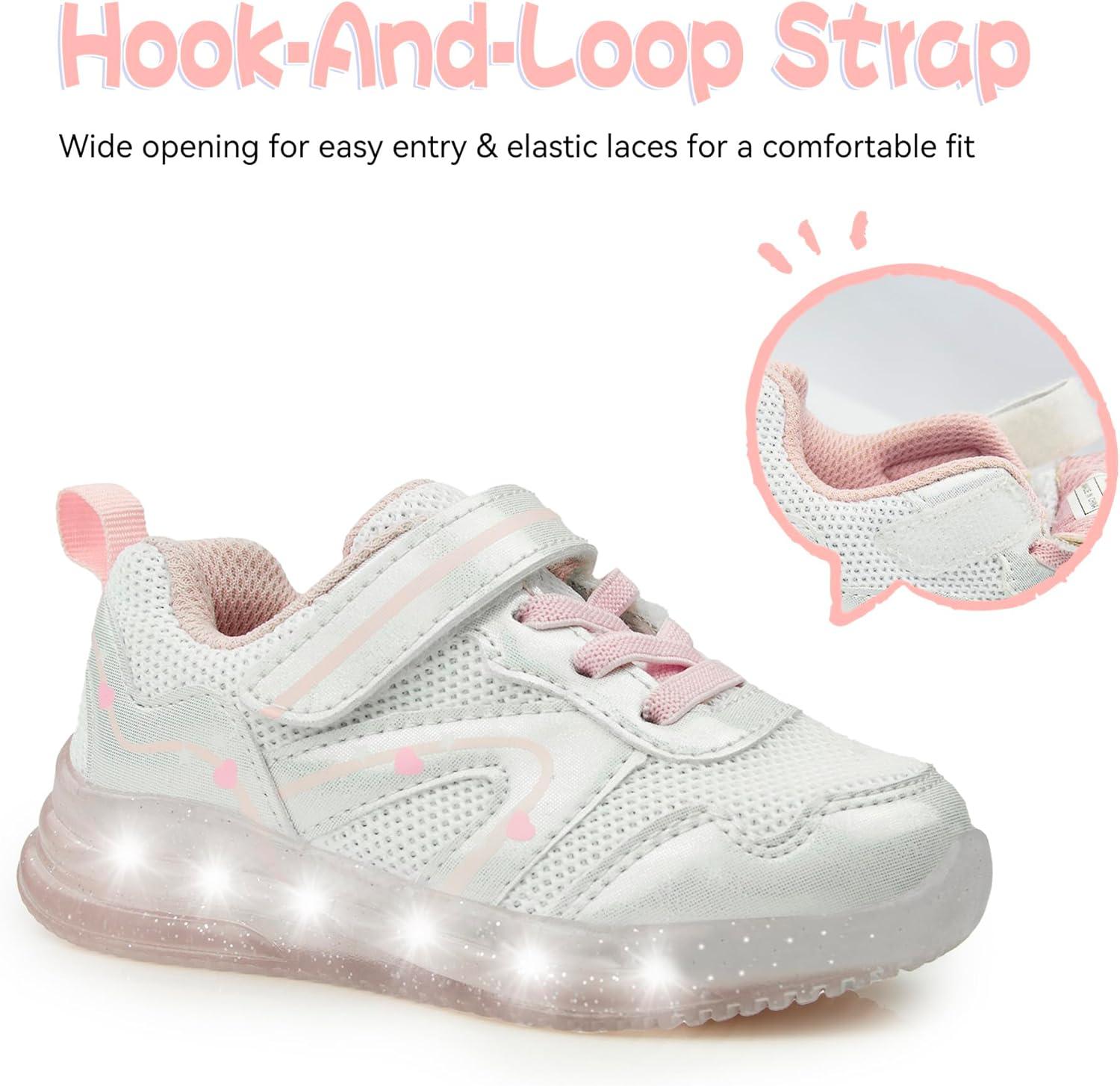 SKYWHEEL Light Up Sneakers for Toddlers Easy-On with Hook & Loop Lightweight Breathable and Soft(Girls White Light Up Shoes)