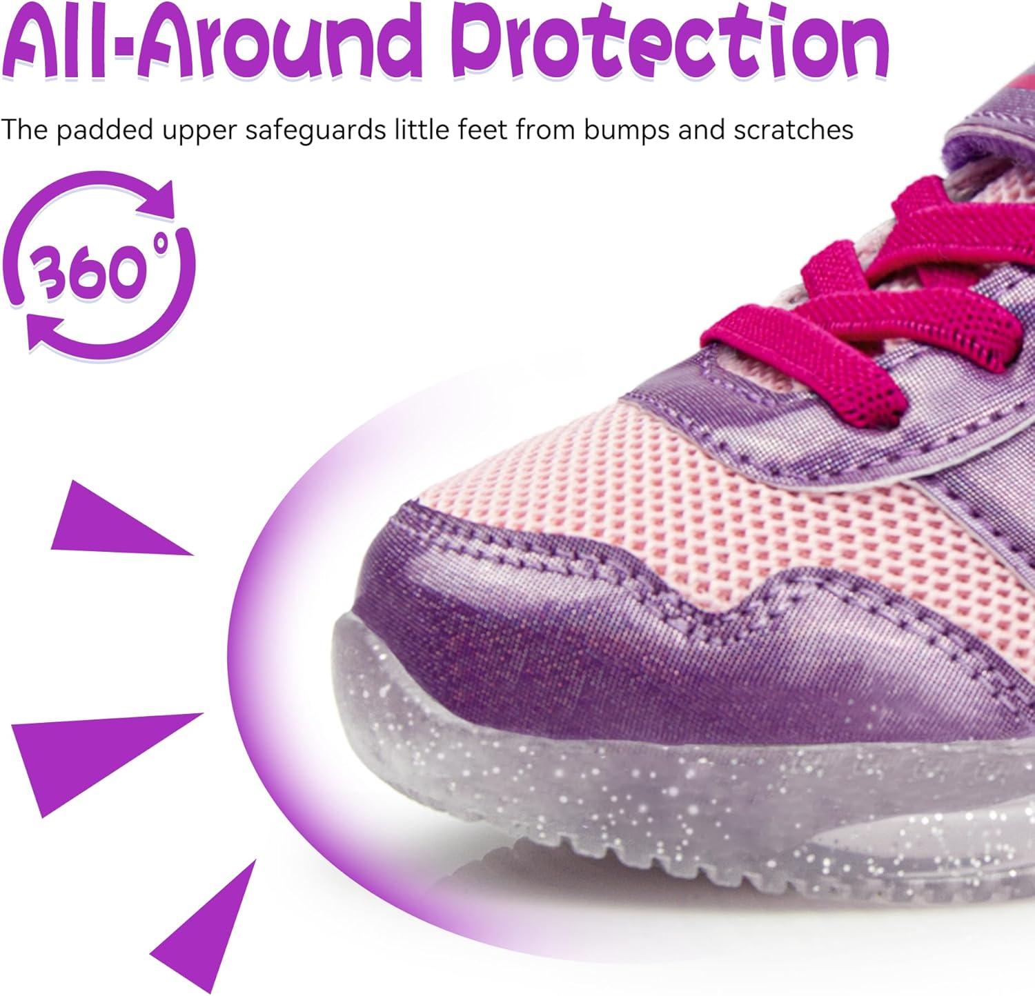 SKYWHEEL Light Up Sneakers for Toddlers Easy-On with Hook & Loop Lightweight Breathable and Soft(Pink Light Up Shoes for Girls)