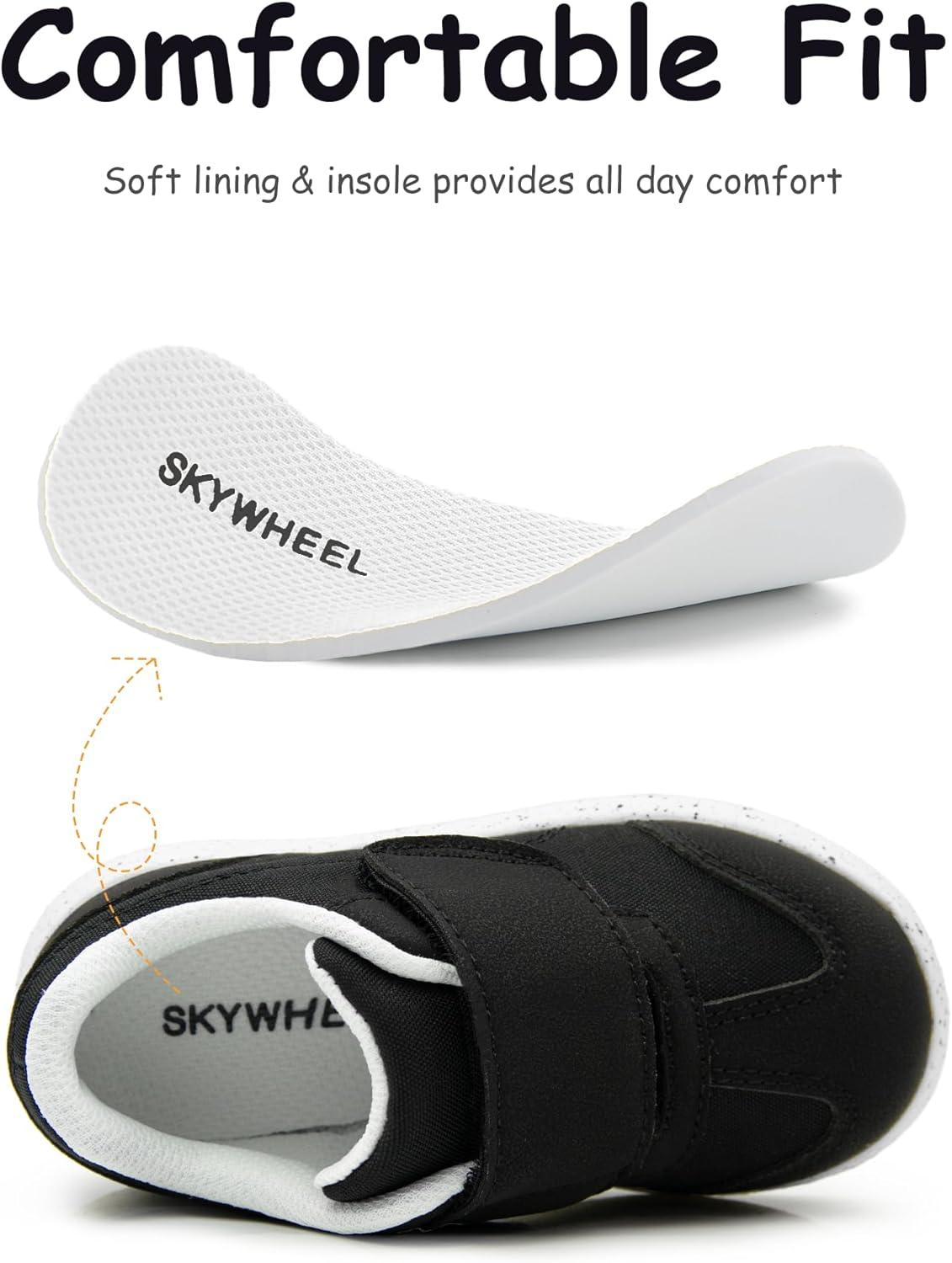 SKYWHEEL Toddler Boys Girls Shoes Wide Toe Box Barefoot Casual Walking Running Sneakers for Toddler and Little Kids(Black White Toddler Boys Shoes)