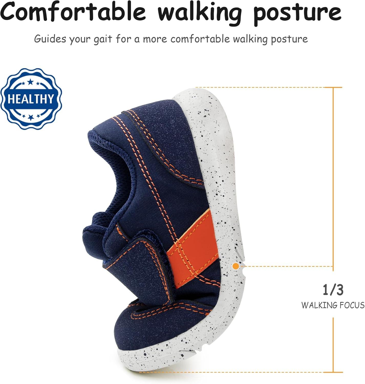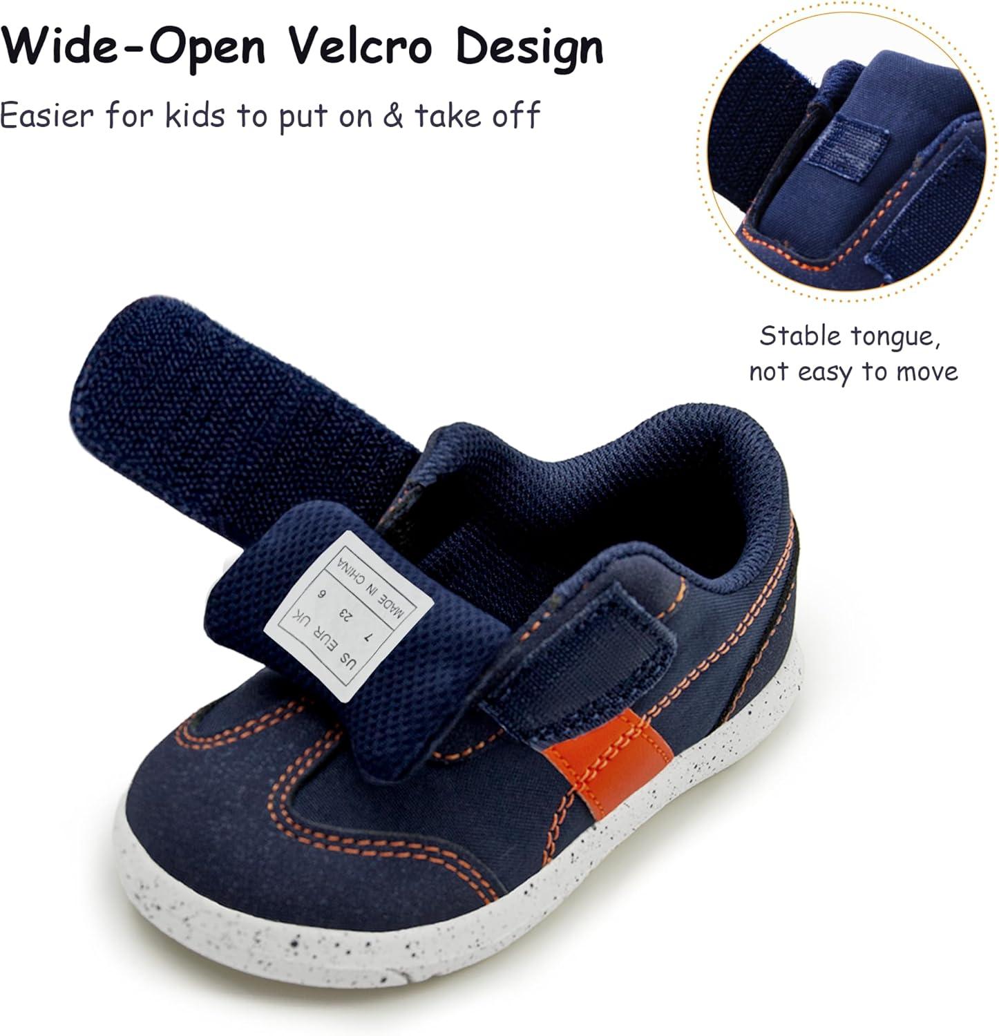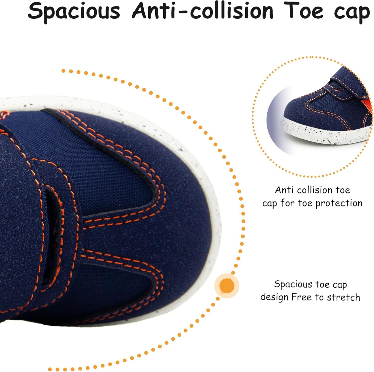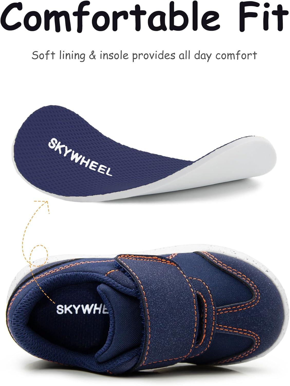 SKYWHEEL Toddler Boys Girls Shoes Wide Toe Box Barefoot Casual Walking Running Sneakers for Toddler and Little Kids(Navy Orange Toddler Boys Sneakers)