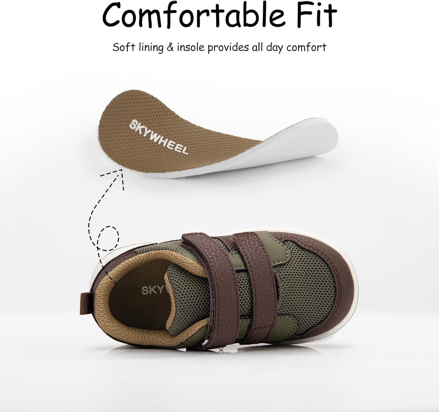 SKYWHEEL Toddler Boys Girls Tennis Shoes Kids Slip On Barefoot Shoes Wide Casual Walking Running Sneakers for Little Kids(120-olive Toddler Boys Shoes)