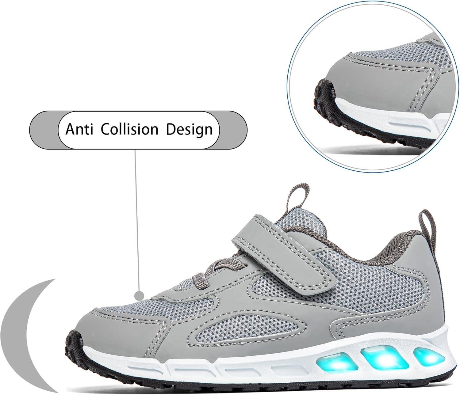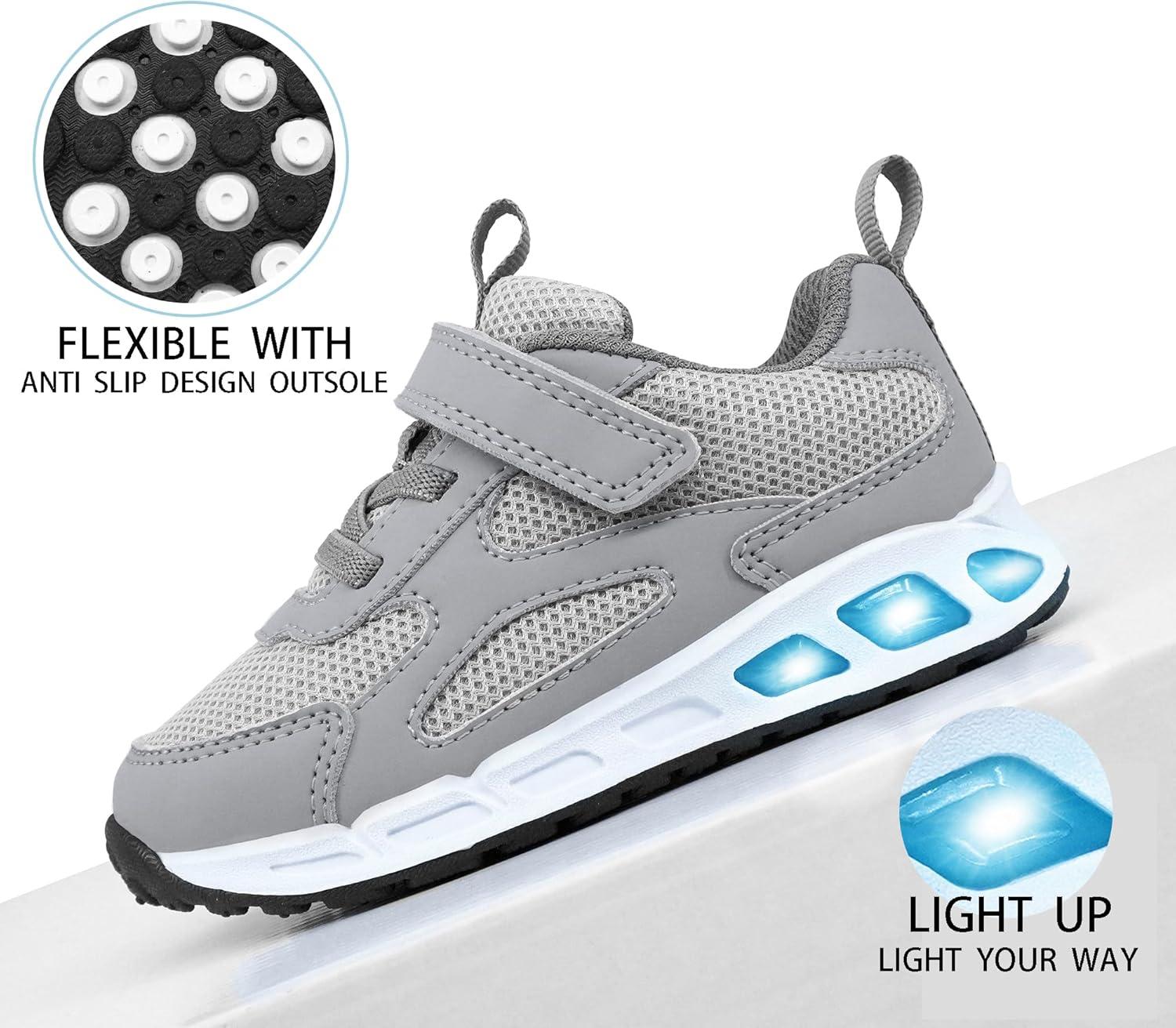 SKYWHEEL Toddler Girls Boys Light up Shoes LED Flashing Lightweight Mesh Breathable Walking Sneakers for Toddler and Little Kids Running(Grey Light Up Shoes Toddler)