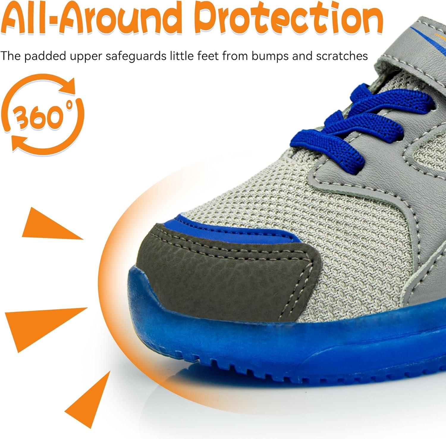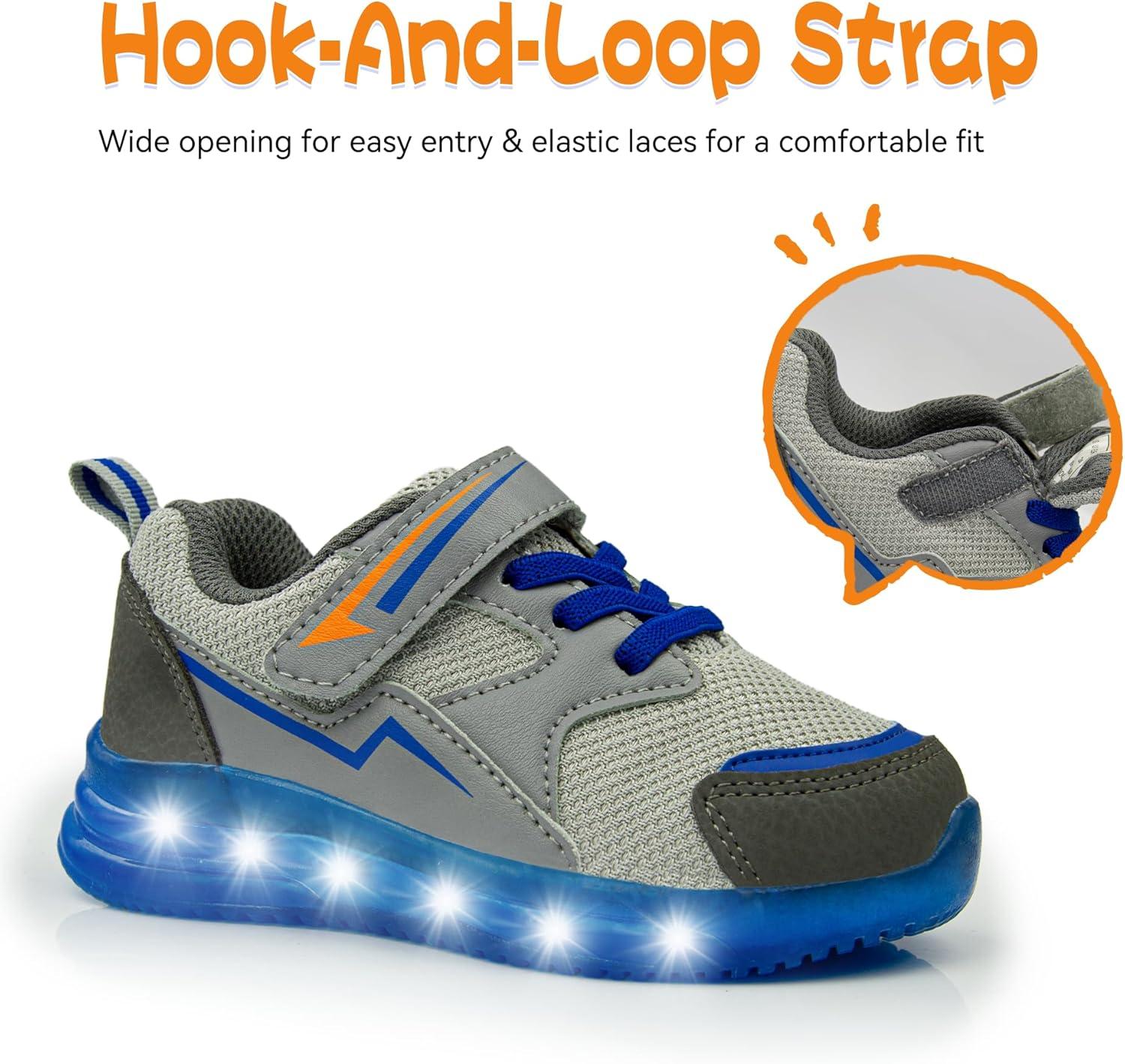 SKYWHEEL Toddler Girls Boys Light up Shoes LED Flashing Lightweight Mesh Breathable Walking Sneakers for Toddler and Little Kids Running(Grey Boys Light Up Shoes)