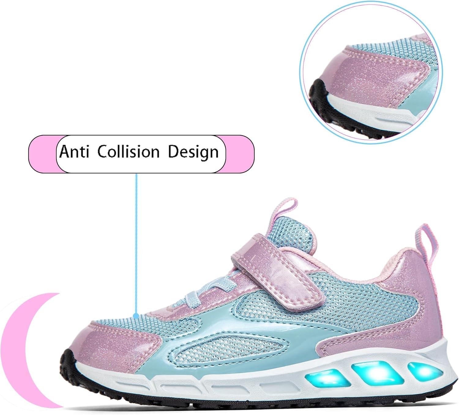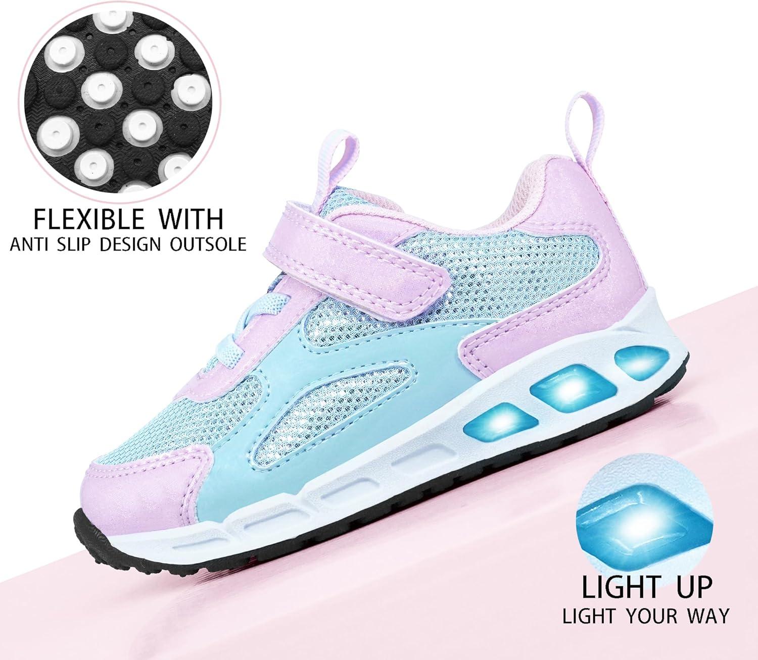 SKYWHEEL Toddler Girls Boys Light up Shoes LED Flashing Lightweight Mesh Breathable Walking Sneakers for Toddler and Little Kids Running(Purple Toddler Light Up Shoes)