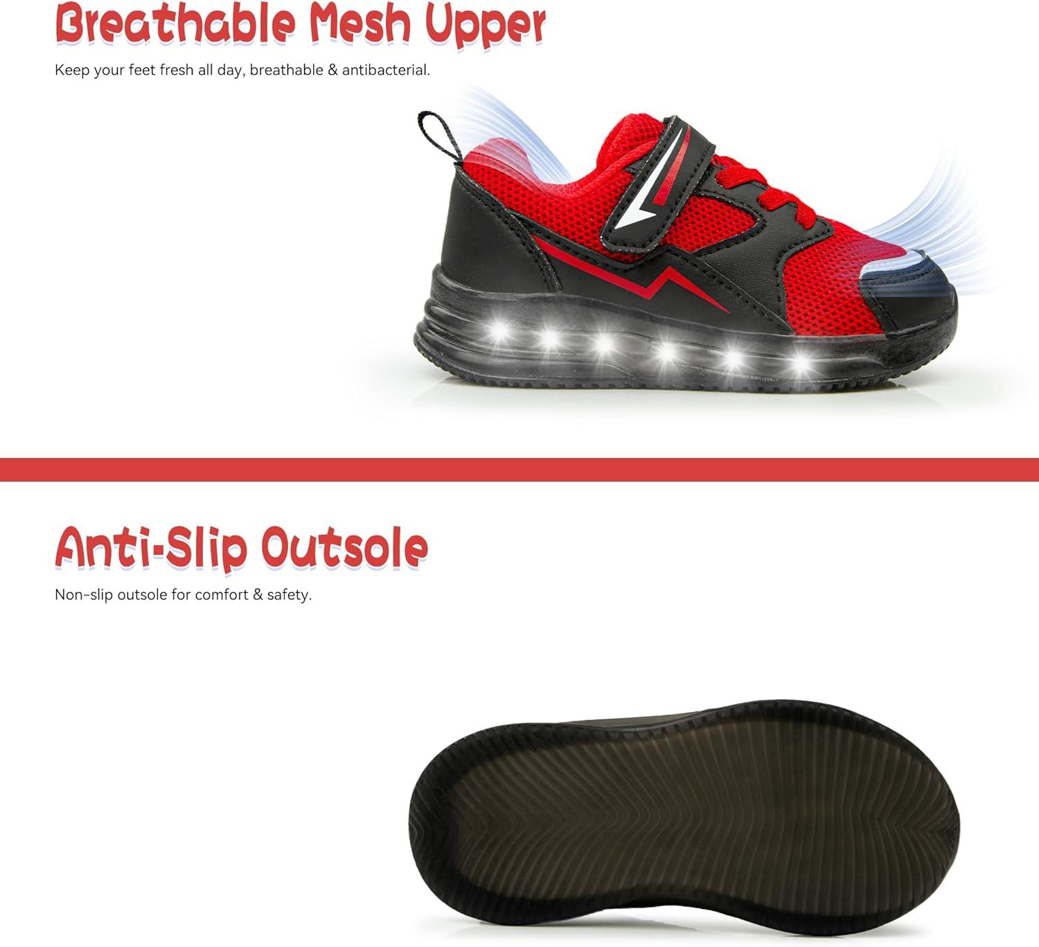 SKYWHEEL Toddler Girls Boys Light up Shoes LED Flashing Lightweight Mesh Breathable Walking Sneakers for Toddler and Little Kids Running(Red Light Up Shoes for Boys)