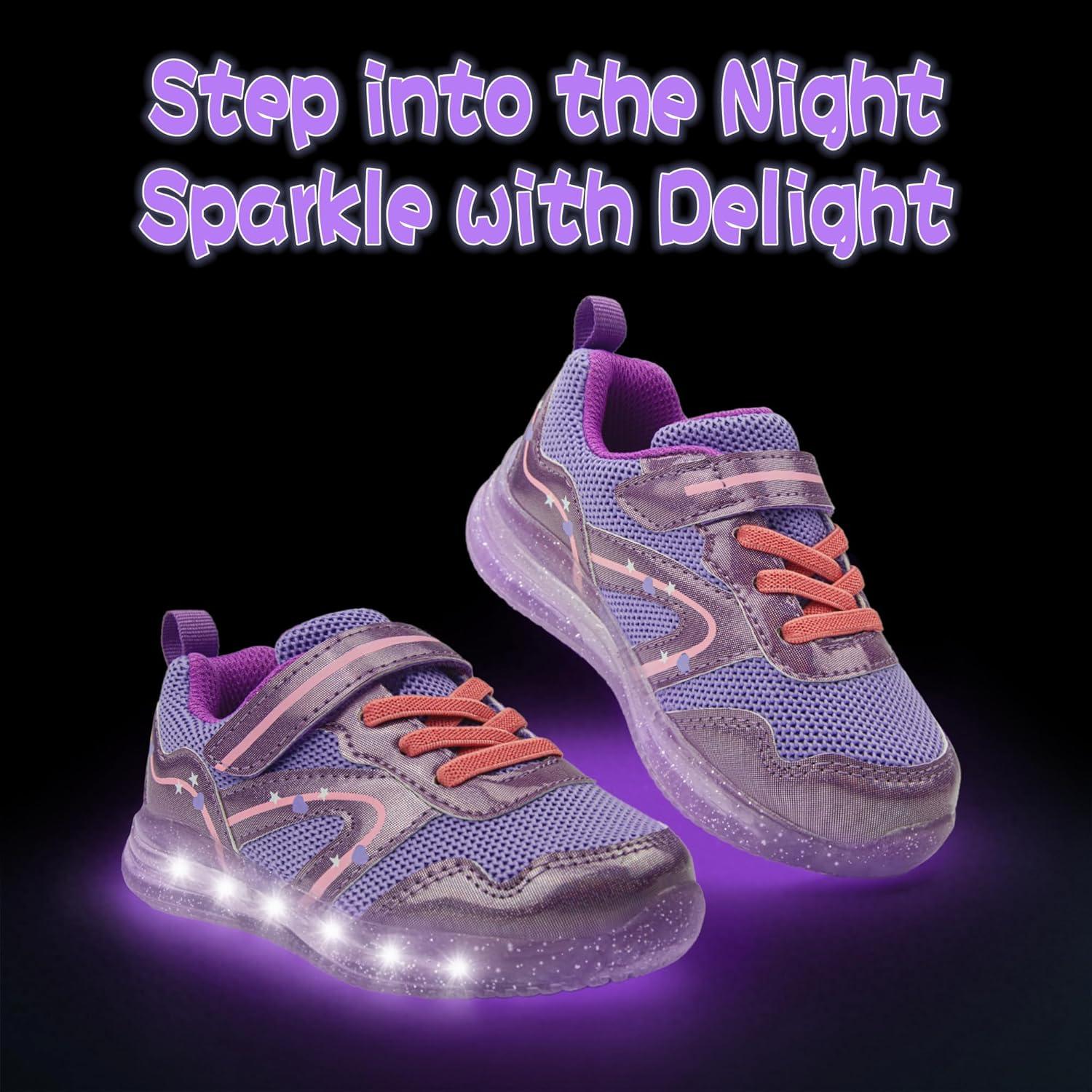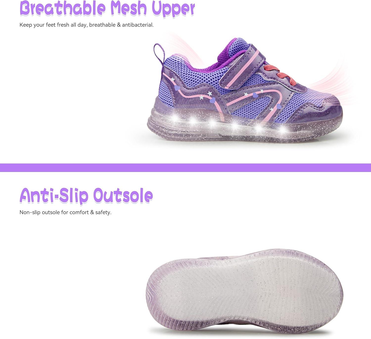 SKYWHEEL Toddler Girls Boys Light up Shoes LED Flashing Lightweight Mesh Breathable Walking Sneakers for Toddler and Little Kids Running(Purple Toddler Shoes)