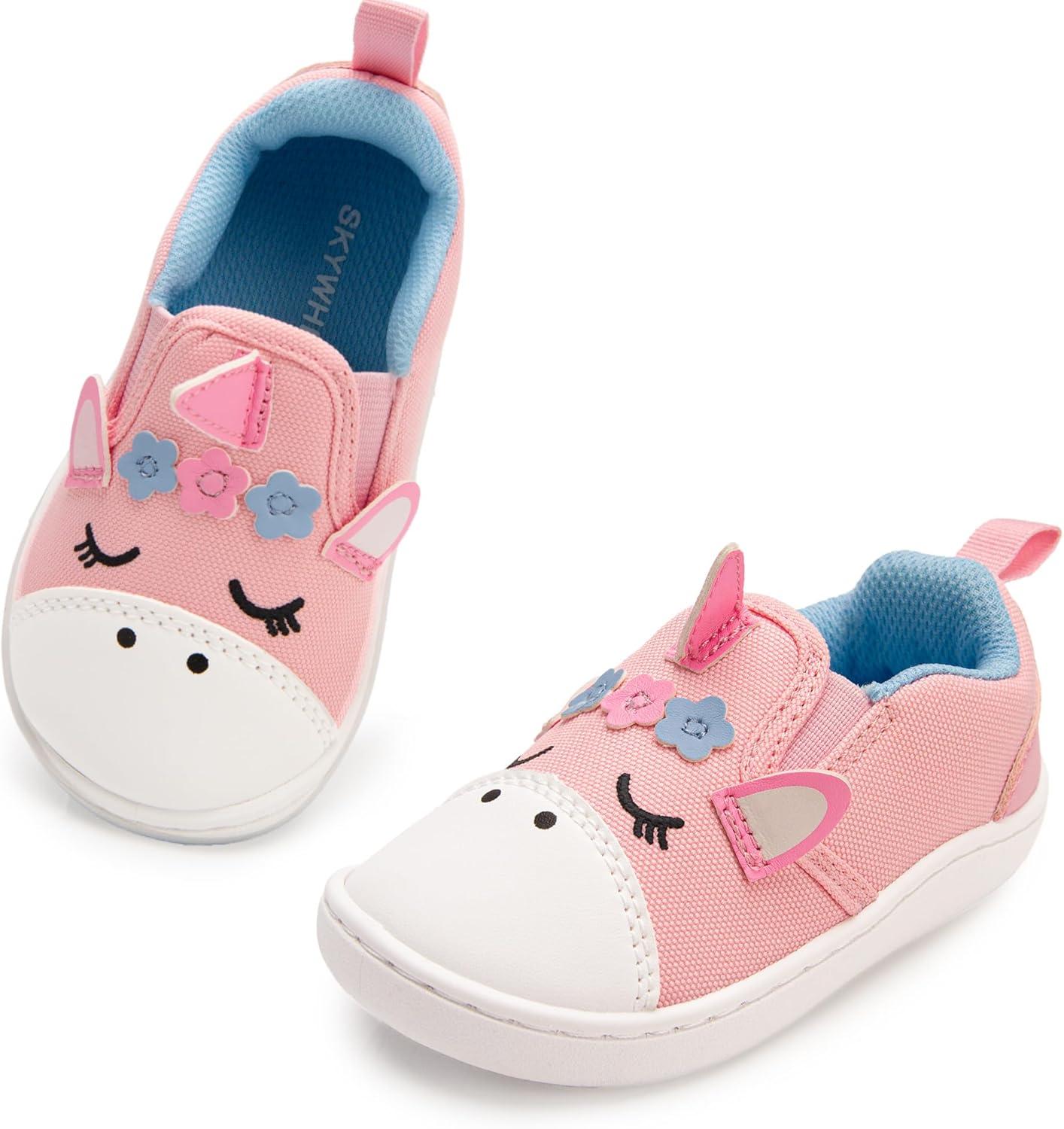SKYWHEEL Toddler Slip On Tennis Shoes for Boys Girls Easy On/Off Shoes with Cartoon Animal Patterns (Size 5/6/7/8/9/10)(Rainbow Galloper)