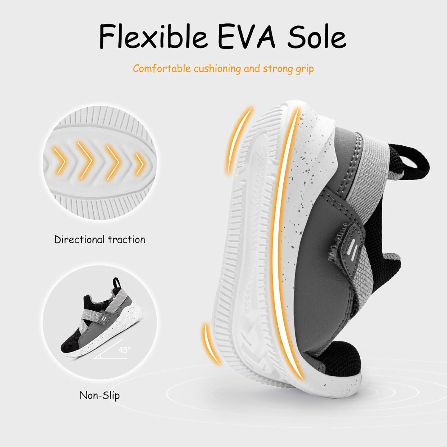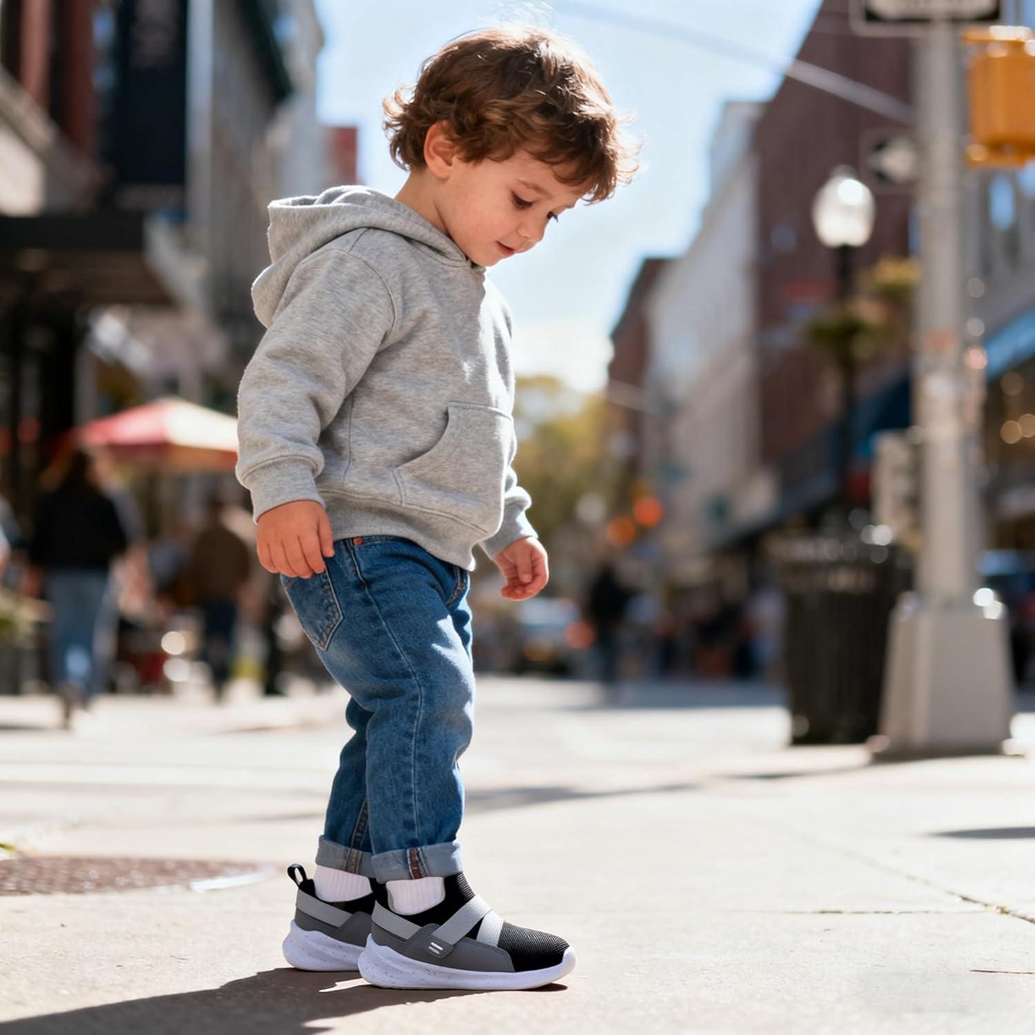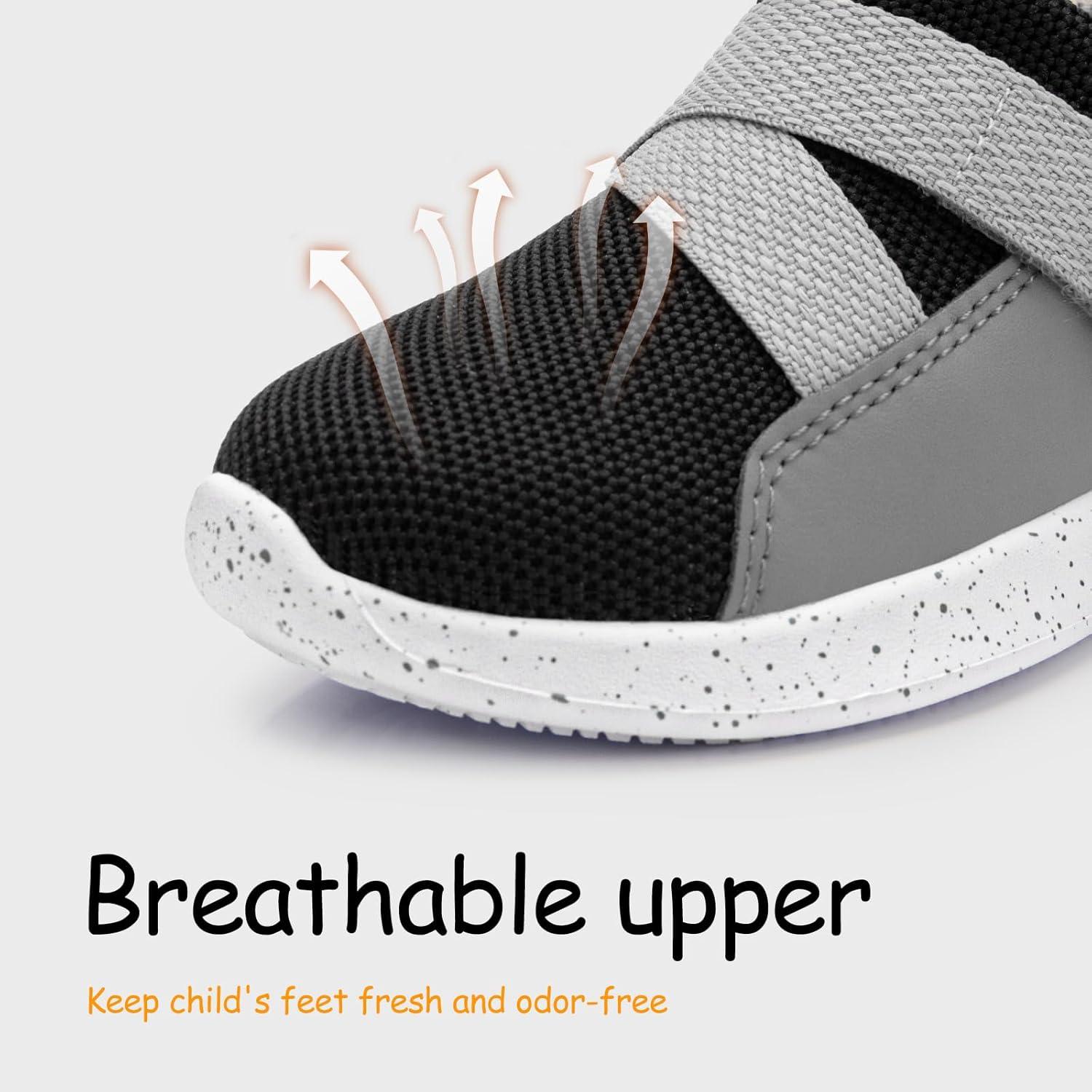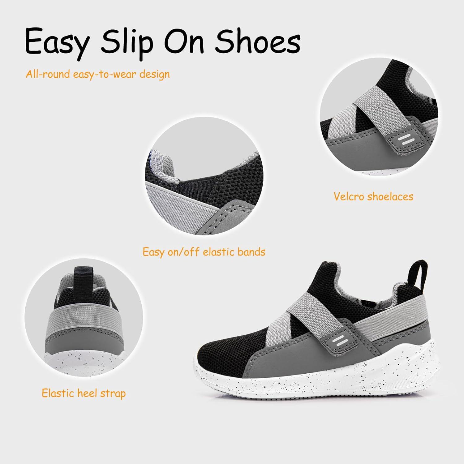 SKYWHEEL Toddler Tennis Shoes Boys Girls Barefoot Slip On Shoes Kids Lightweight Breathable Sports Sneakers for Walking Running(Black Toddler Shoes)