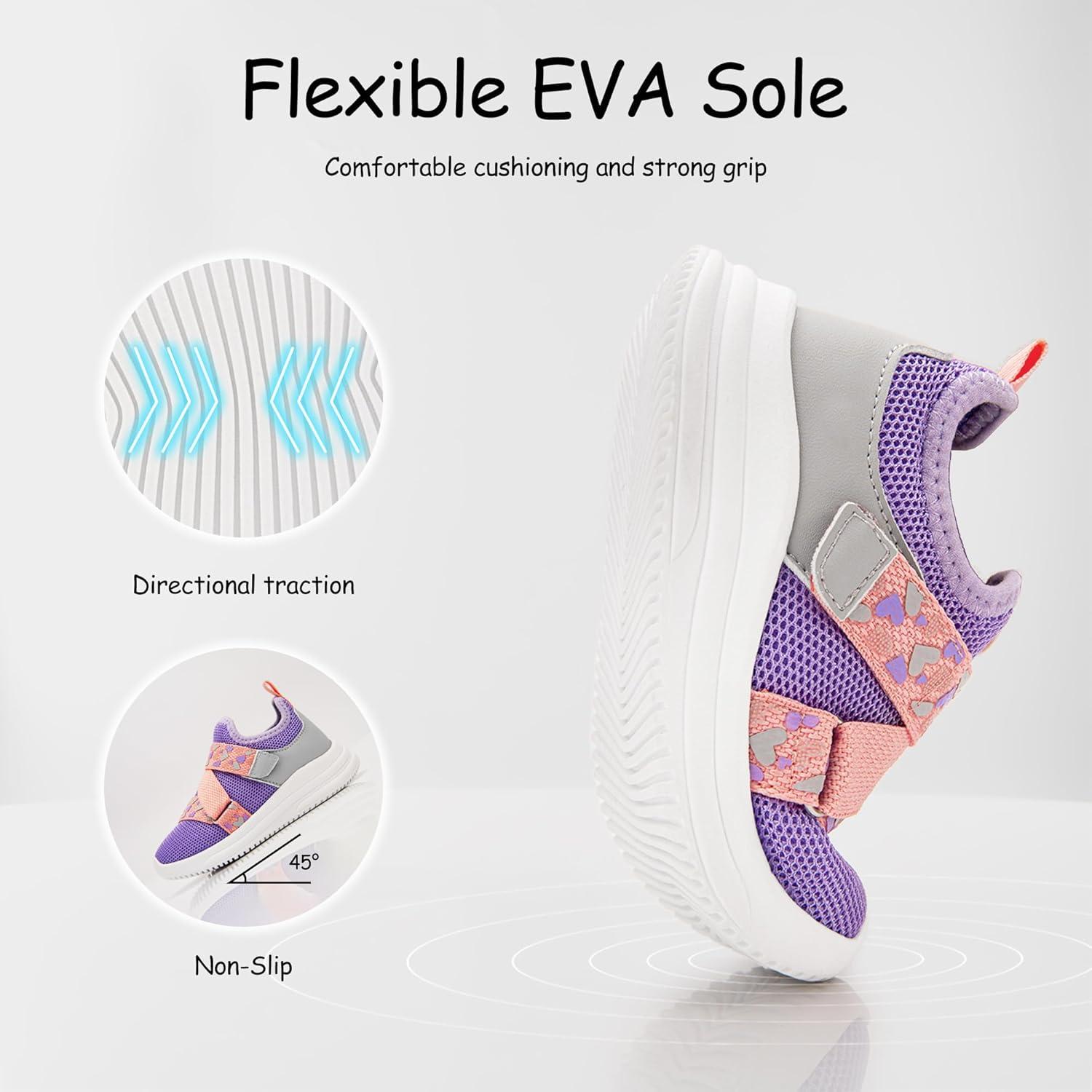 The Ultimate “First Step” Sneaker for Active Toddlers! Unmatched Comfort & Breathability toddler shoes for boys girls! Our toddler boys girls tennis shoes feature a advanced breathable mesh upper with knit mesh ventilation holes that allow constant air circulation, keeping tiny feet cool and dry all day long. The wide toe box design offers ample room for toes to wiggle and grow naturally, promoting healthy foot development and ensuring all-day comfort for your active toddler. Effortless “Slip On & Off” – Designed with busy parents and independent toddlers in mind, these are the ultimate slip-on sneakers with a game-changing difference. The easy-on, wide shoe mouth (shoe opening) makes getting ready a breeze. Plus, the adjustable hook-and-loop strap (magic tape) allows for a customizable, secure fit that adapts to your child's unique foot shape. The flexible EVA sole mimics barefoot movement, providing just the right amount of support and outstanding flexibility for running, jumping, and exploring. Toddler boys girls to tennis, walking, running, athletic activities, or just casual everyday wear, these versatile sneakers are up for the task. They are the ideal everyday casual shoes for playground fun, kindergarten, preschool, and beyond. Durable enough for outdoor adventures yet stylish enough for any outfit, they are the only pair of toddler shoes you'll need.